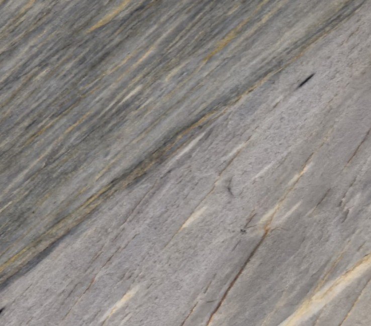 Aurora Blue Granite is a blue and gray granite with sweeping linear movement and layered tonal depth. Cool slate and steel hues are interwoven with soft taupe and warm amber highlights, creating a sense of natural motion across each slab. Fine dark accents and subtle mineral variation add texture without overwhelming the overall composition.