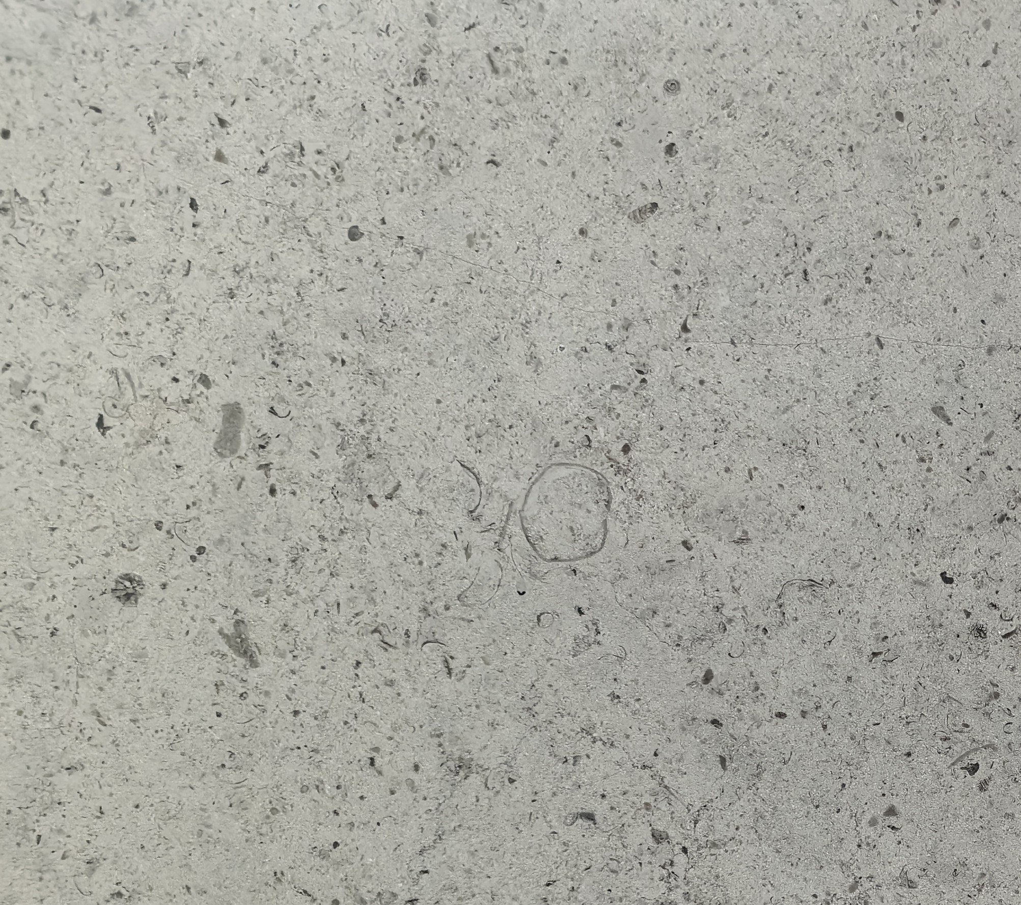 Gascogne Blue Limestone features a soft gray-blue background with a fine distribution of small shell fragments and subtle fossilized inclusions. The surface presents a quiet, uniform character from a distance, while closer viewing reveals delicate variations in tone and texture that give the stone depth without strong visual movement. Gascogne Blue Limestone offers a restrained appearance that works well within architectural palettes that favor understated materials and balanced tonal compositions.