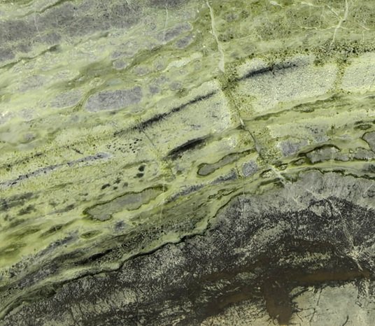 For illuminated applications, Malakit Onyx can be cut into a thin stone layer and bonded to glass or clear acrylic to create a lightweight panel. This fabrication method reduces the weight compared to traditional slab installations while allowing light to pass through the stone, highlighting its layered green coloration and natural patterning.