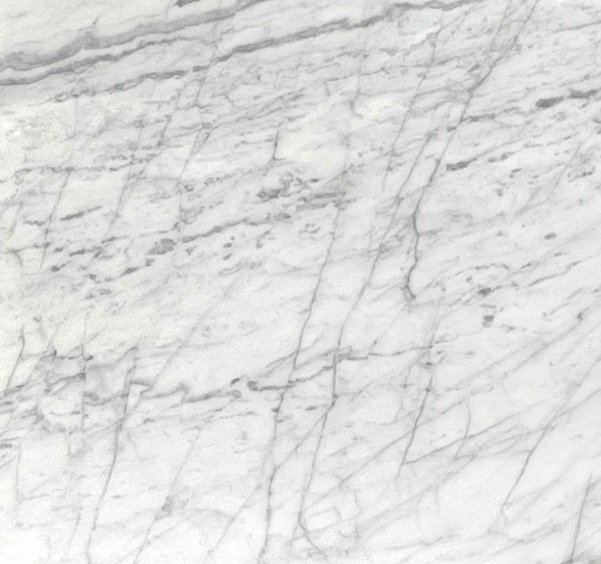Olympos Marble displays a bright white background crossed by soft gray veining that flows diagonally across the surface. Layers of fine linear movement and broader mineral bands create a sense of depth and direction, while delicate tonal variations give the stone a refined, airy appearance. The interplay of crisp white areas and subtle gray tracery produces a balanced composition that feels both classic and contemporary.