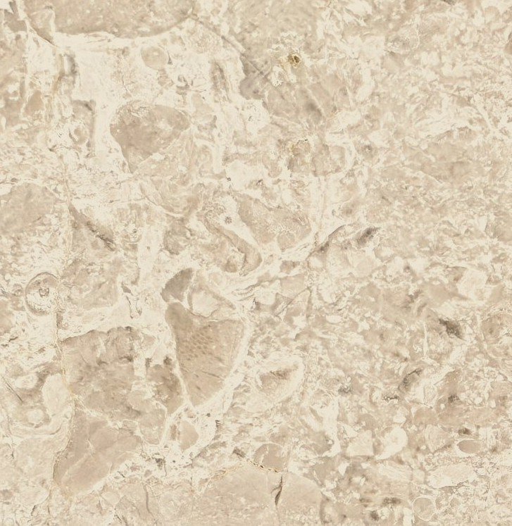 Omani Beige Marble presents a warm beige background composed of densely distributed fossil fragments and mineral inclusions. Rounded shell forms and small fossilized elements are dispersed throughout the surface, producing a compact organic pattern within the stone. Omani Beige Marble carries a consistent coloration with subtle tonal variation, allowing the fossil structure to read clearly across the slab while maintaining a balanced and uniform visual field.