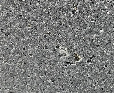 Turmak Gray Limestone features a deep medium-to-dark gray background with a fine, compact grain structure. Subtle mineral flecks and small natural voids appear sporadically across the surface, creating a lightly textured field of gray tones. The overall pattern remains restrained and consistent, producing a calm and uniform visual character across the stone.