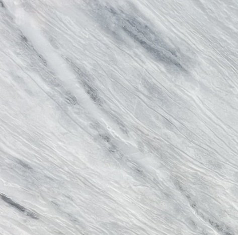 Princess White Granite presents a cool white and pale gray field defined by sweeping, diagonal movement and soft, layered veining. Diffused transitions between light and mid-tone grays are punctuated by deeper charcoal accents that drift across the surface, creating a sense of fluid motion. The pattern reads as continuous and atmospheric, with subtle shifts in density that give the stone depth without overwhelming the overall composition.